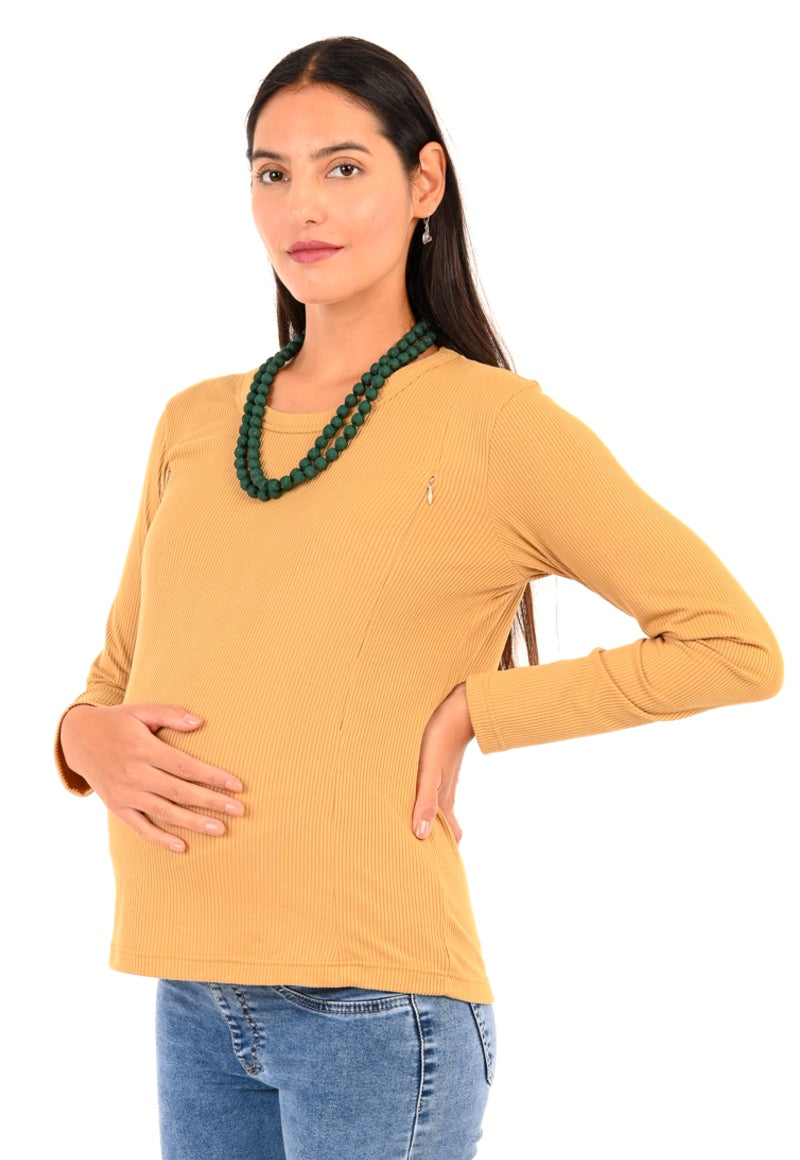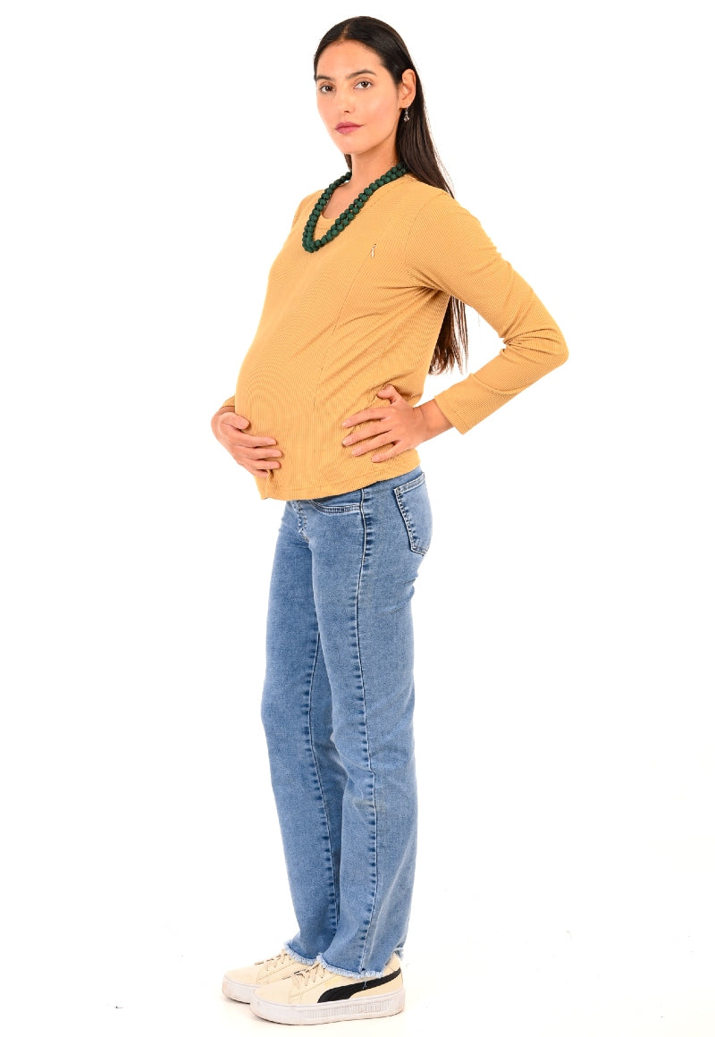 Polera manga larga ideal para usar los 9 meses por su tela elasticada y mejor compañera para una lactancia cómoda y disimulada.