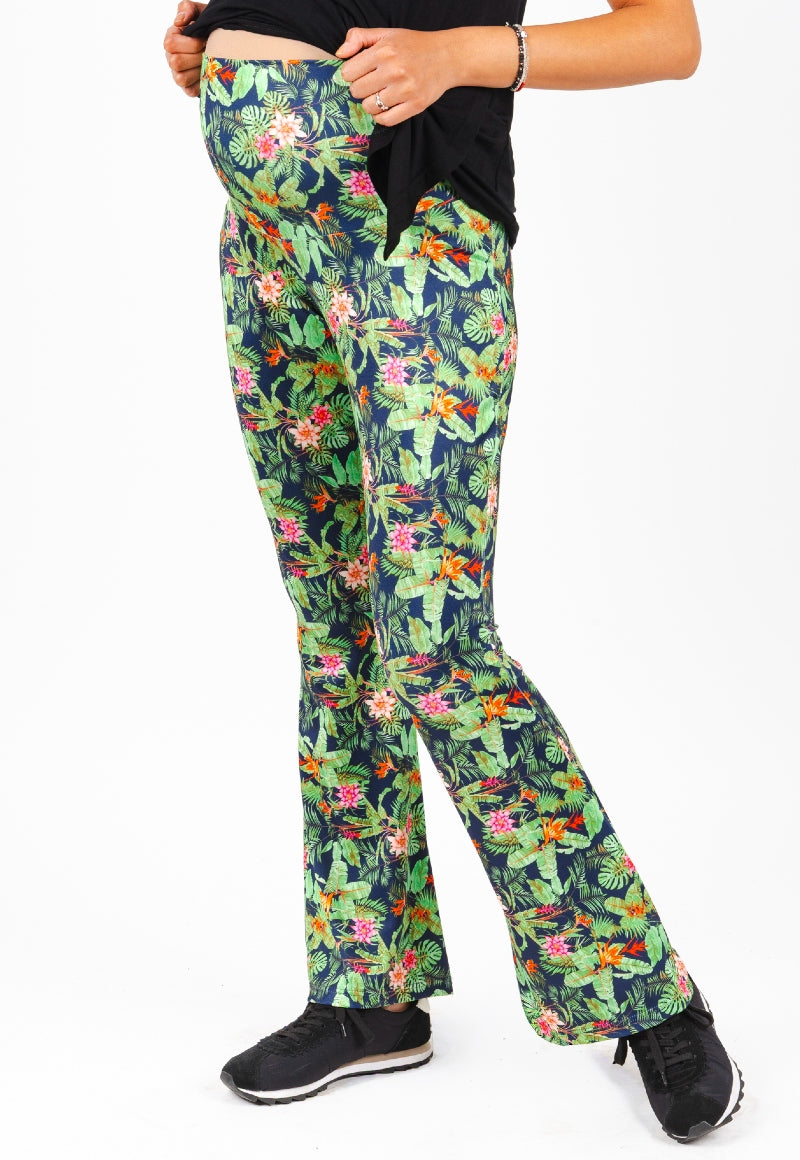 Calza de tela suave y elasticada con diseño flare (se abre la pierna desde la rodilla).