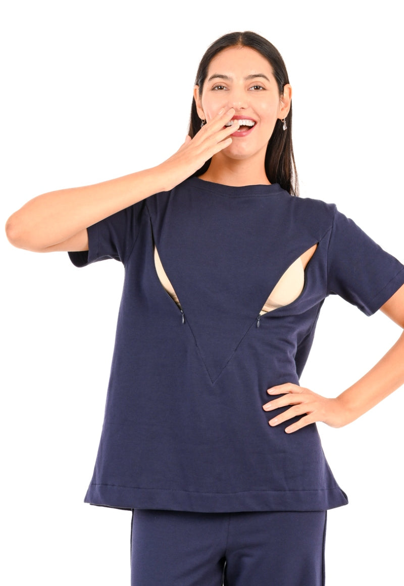 Polerón Marta Marino Maternal y Lactancia Cierres Manga Corta
