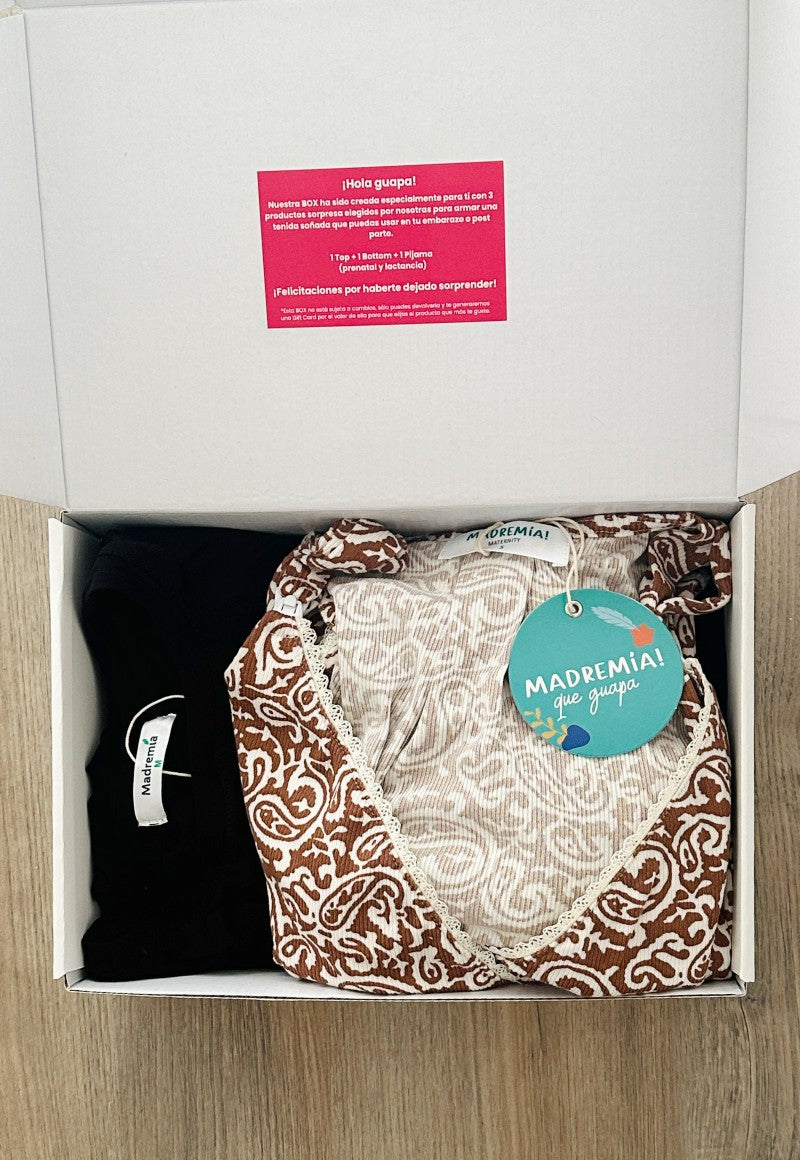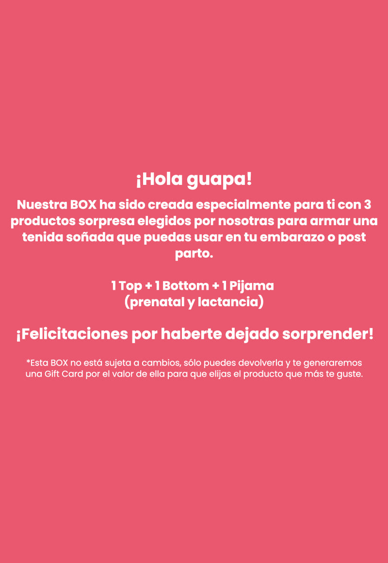 Madremía BOX ha sido creada especialmente para ti con 3 productos SORPRESA que elegiremos nosotras personalmente para armarte una tenida soñada para usar pre natal o post parto.